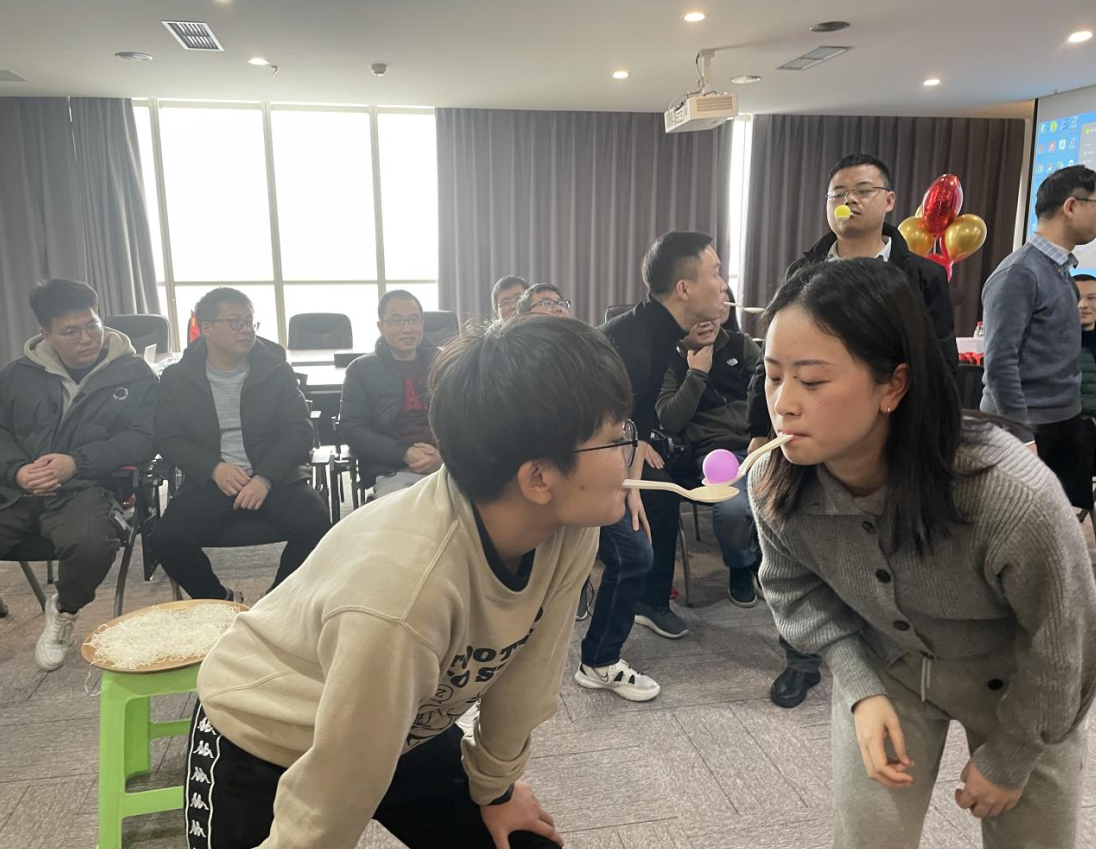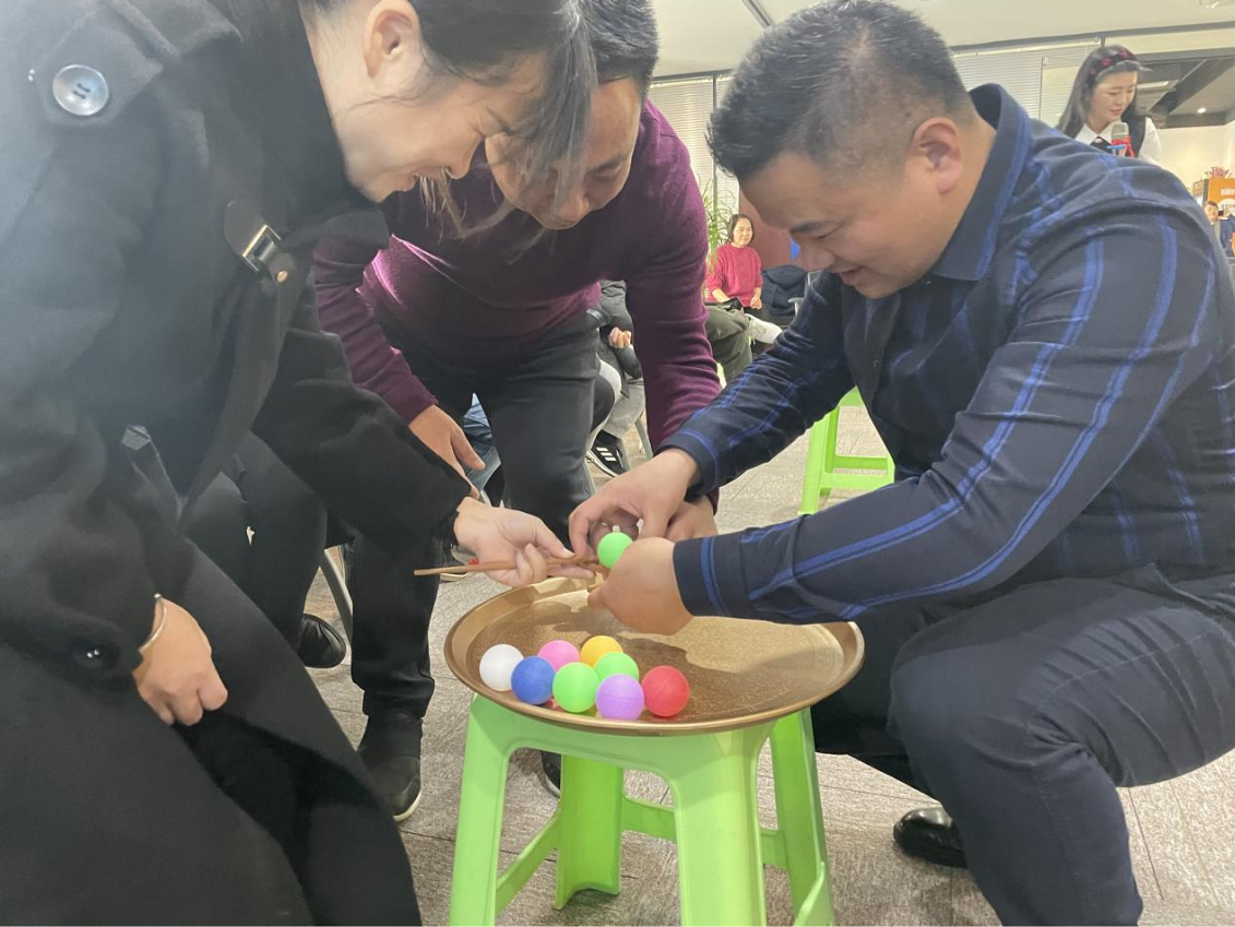 本次活動(dòng)以“國(guó)球”乒乓球開展了三個(gè)小游戲,圓圓的乒乓球寓意團(tuán)團(tuán)圓圓,小小的乒乓球讓歡聲笑語(yǔ)充滿了整個(gè)會(huì)場(chǎng)。伴隨激情昂揚(yáng)的音樂(lè),同事們兩兩一組,瘋狂扭動(dòng),身后的乒乓球如同游戲名稱“跳動(dòng)的夢(mèng)想”,互不相讓,在激烈的角逐中,工程部同事喜奪首勝;在接下來(lái)的“湯勺上的團(tuán)圓”游戲中,來(lái)自不同部門的同事展示出了驚人的合作默契,充分體現(xiàn)了盛焰人不凡的凝聚力;第三個(gè)游戲“齊心協(xié)力的璀璨”中,領(lǐng)導(dǎo)班子成員親自參與游戲,與員工共同分享新年的喜悅,將本次活動(dòng)推向了高潮。