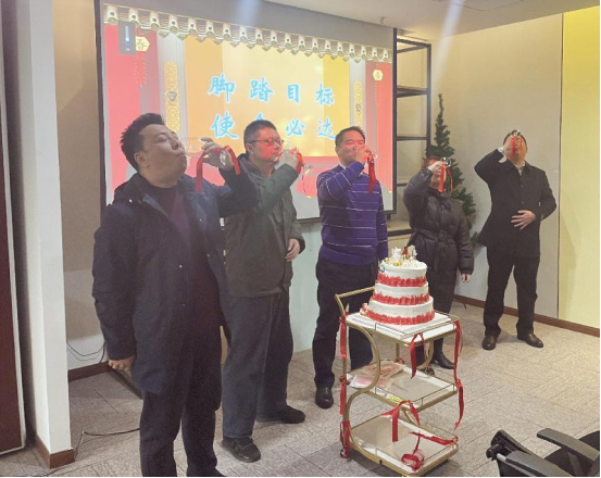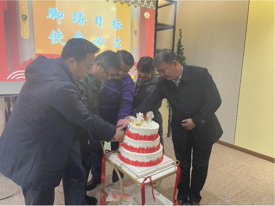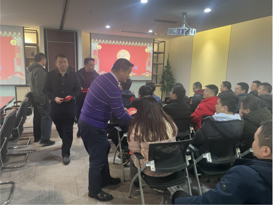 最后,羅總攜領導班子給參會員工派發開工利是,并對全體同仁致以殷切期盼和美好祝福;隨后領導班子切開滿載希望和祝福的“開工蛋糕”,共飲“開工酒”,迎接新年上班的第一天。