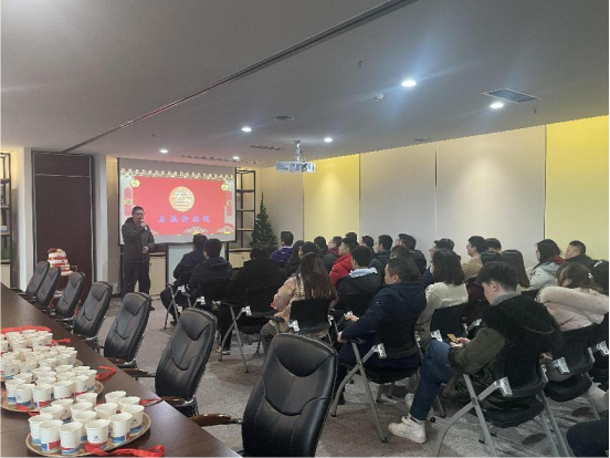 “開工會議”由綜合部籌辦,主持人送來新年祝福,首先分享了自己春節期間的所見所聞,并隨機挑選同事與大家共同分享了新年趣事;繼而展開了別開生面的“點名報到”活動,主持人簡單描述了領導或部分員工的個人才藝與特點,讓大家根據描述的情況猜出同事的名字,大家積極參與活動,全部都猜出正確名字,現場氛圍好,可見平日里大家關系融洽,相互了解頗深。